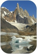 Another famed Patagonian peak, Mount Fitz Roy stradles the border between Argentina and Chile and is famous among trekkers and climbers around the world. The peak is also known as Cerro Chalten, meaning "smoking mountain" due to a nearly perpetual cloud cap. Patagonia-Argentina.com